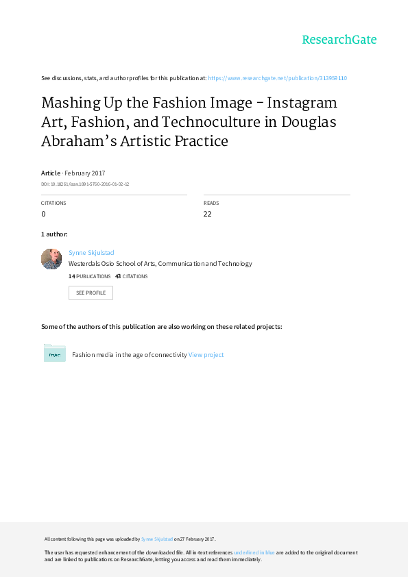 Get Pdf Mashing Up The Fashion Image Instagram Art Fashion And Technoculture In Douglas Abraham S Artistic Practice Fashion Media In The Age Of Connectivity View Project Synne Skjulstad Academia Edu Desktop Wallpaper
