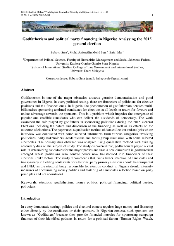 Get Pdf Godfatherism And Political Party Financing In Nigeria Analysing The 2015 General Election Babayo Sule Academia Edu HD