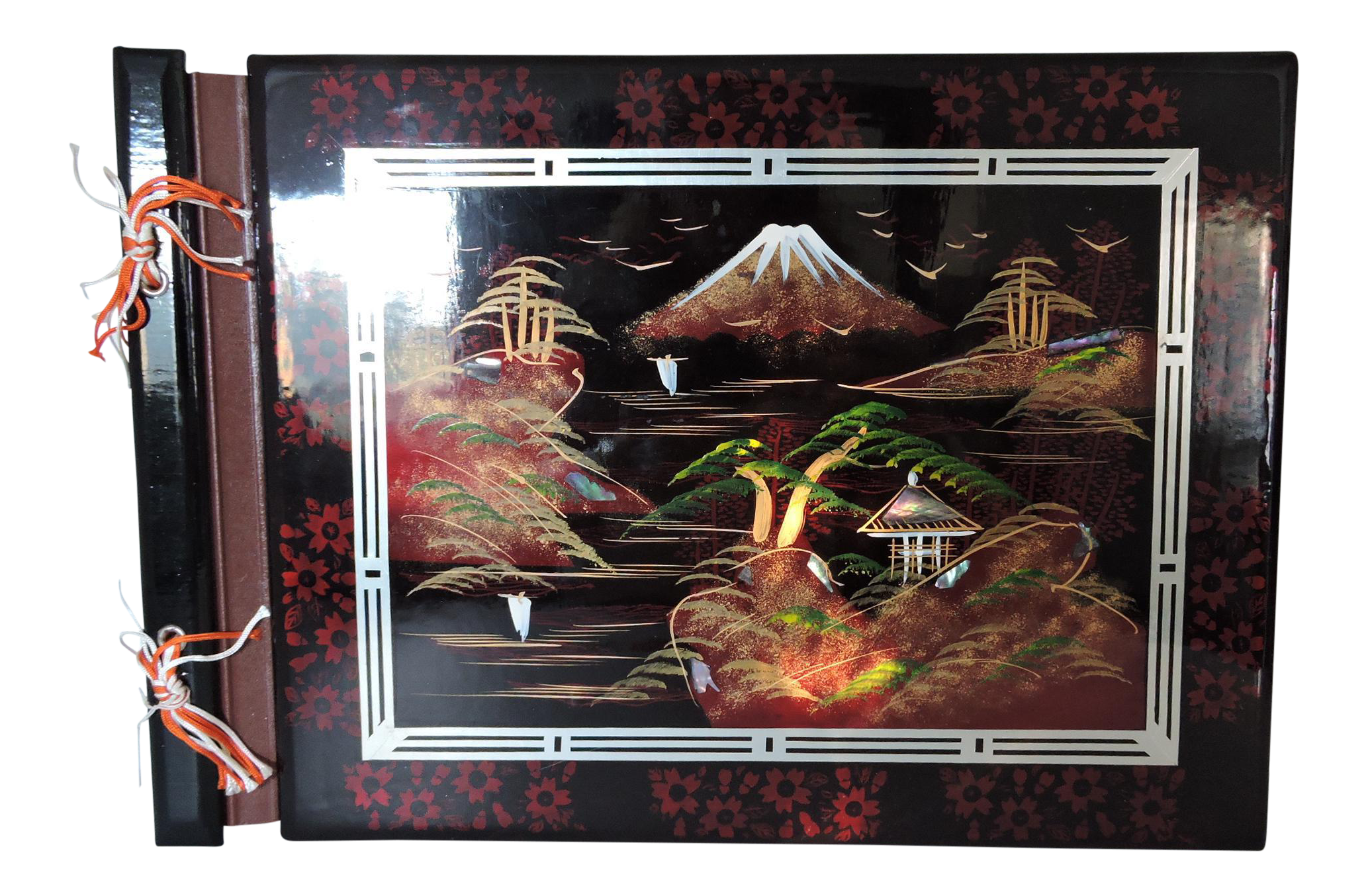 Download Inlayed Mid Century Vintage Black Red Lacquered Japanese Photograph Album Mount Fuji Boxed Chairish Free HD
