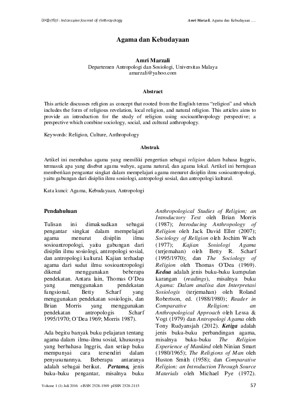 Download Pdf Umbara Indonesian Journal Of Anthropology Agama Dan Kebudayaan Amri Marzali Melvera Martin Academia Edu Free HD